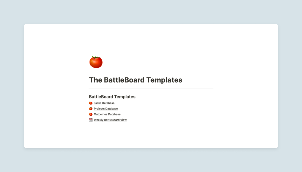 You're ordering The BattleBoard, a premium template pack for Notion. (@NotionHQ called these templates "The ultimate productivity system.")
